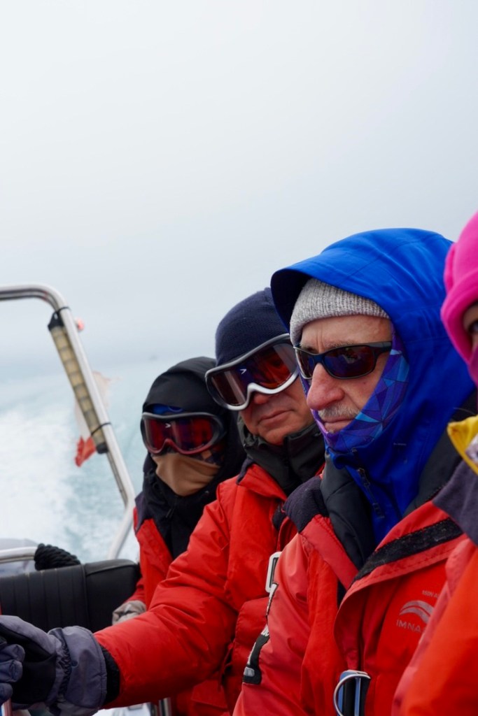 Houses on land soon dissolved into the mist as we sped further away from shore, the wind cold upon our faces. Pulling scarves more securely around our necks and faces, drawing hoods more tightly and snuggling in, the cold brisk air was both refreshing and numbing. With everyone packed in tightly together, it offered a degree of comfort and protection from the cold.