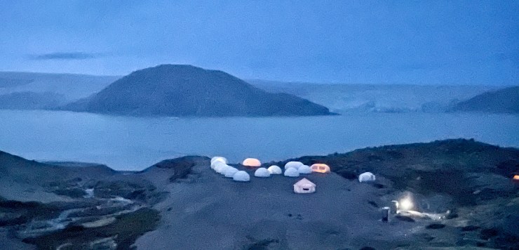 Returning across the fjord to camp, we found a kayaking group had also taken up residence near our camp. Having their own tents, they remained apart from our dome tents. Reportedly, this kayaking group had some difficulties on their excursion through the fjords and may have been behind in their planned itinerary. I recognized several of that group being on the same flight from Iceland to Greenland. I had considered that kayaking trip in Greenland, but after experiencing the weather and how much easier it was to be transported quickly by zodiac boat I was happy that I did chose my current itinerary.