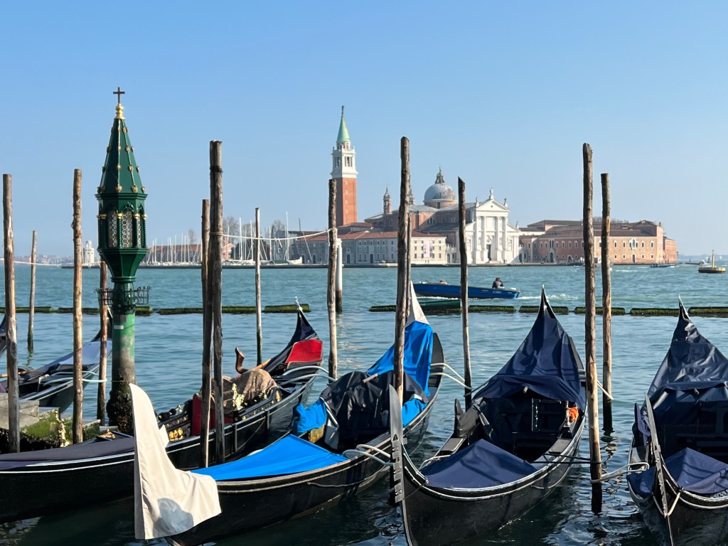 Out on the Grand Canal I could hear singing and eventually I could see a group of gondolas floating toward me in the wide canal. It was not the gondolier singing but a man, standing, accompanied by a guitarist, singing “Volare”. Now how much more Italian could this scene be? Floating by on their way up the Grand Canal, the melody stuck in my head and made me smile as this was a moment to savor.