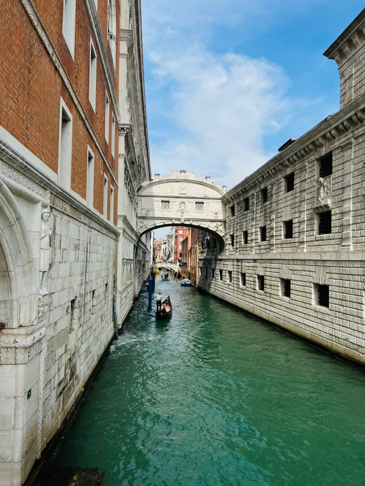 The Bridge of Sighs leading from the Doge Palace to the prison across this canal. From the small window in the bridge, prisoners supposedly would sigh as they caught their last views of lost freedom.