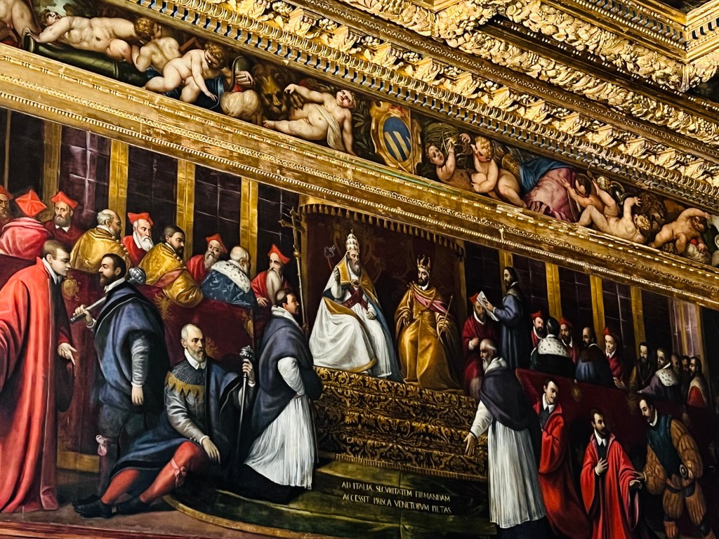 The opulence was overflowing throughout with painted ceilings and walls, gold leaf, stained glass windows and tiled floors.