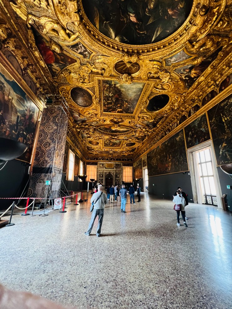 Around the corned we proceeded to the Doge Palace, built in 1340 (over 100 years prior to Columbus sailing to the “new world”). It is also an elaborate building with countless paintings, murals and ancient artifacts.