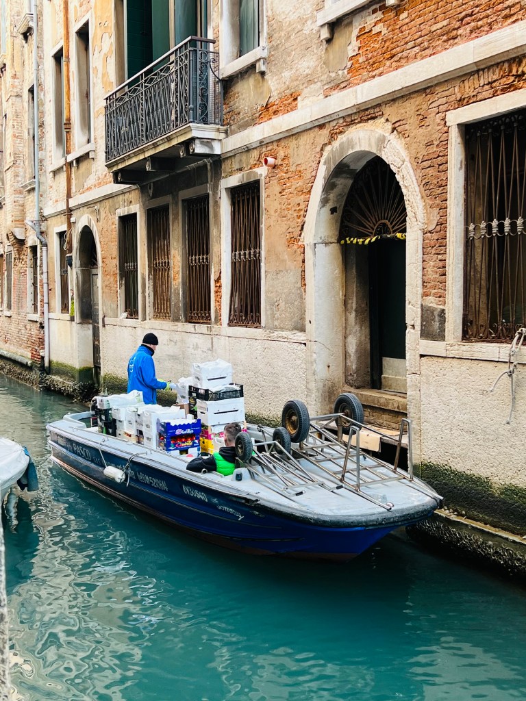 Watching the larger boats with construction equipment and building supplies maneuver the narrow canals barely scraping past gondolas was intriguing.