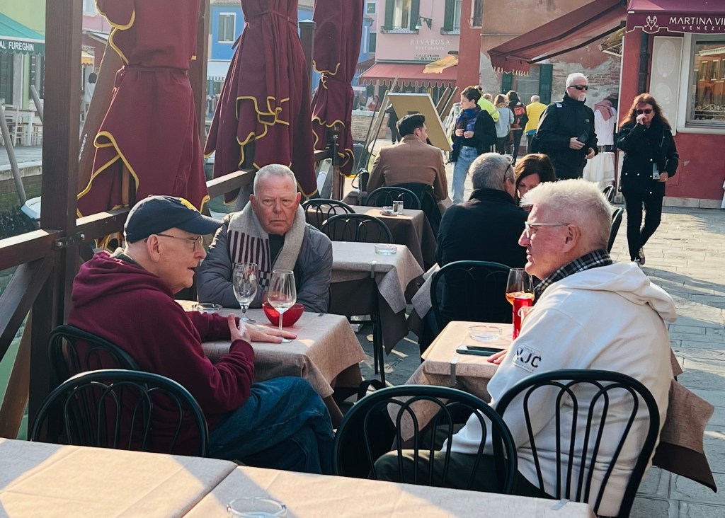 On Friday, 3/24 I awoke with a soar throat, but otherwise felt well. It started out foggy, as we were heading out to the islands of Murano and then Burano. It would be a full day of traveling.