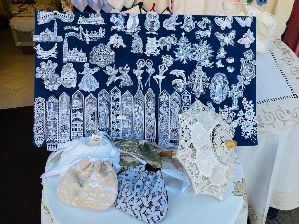 Murano is well known for it’s hand blown glass and Burano for it’s lace.
