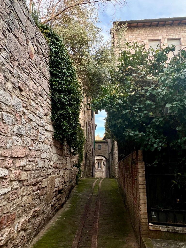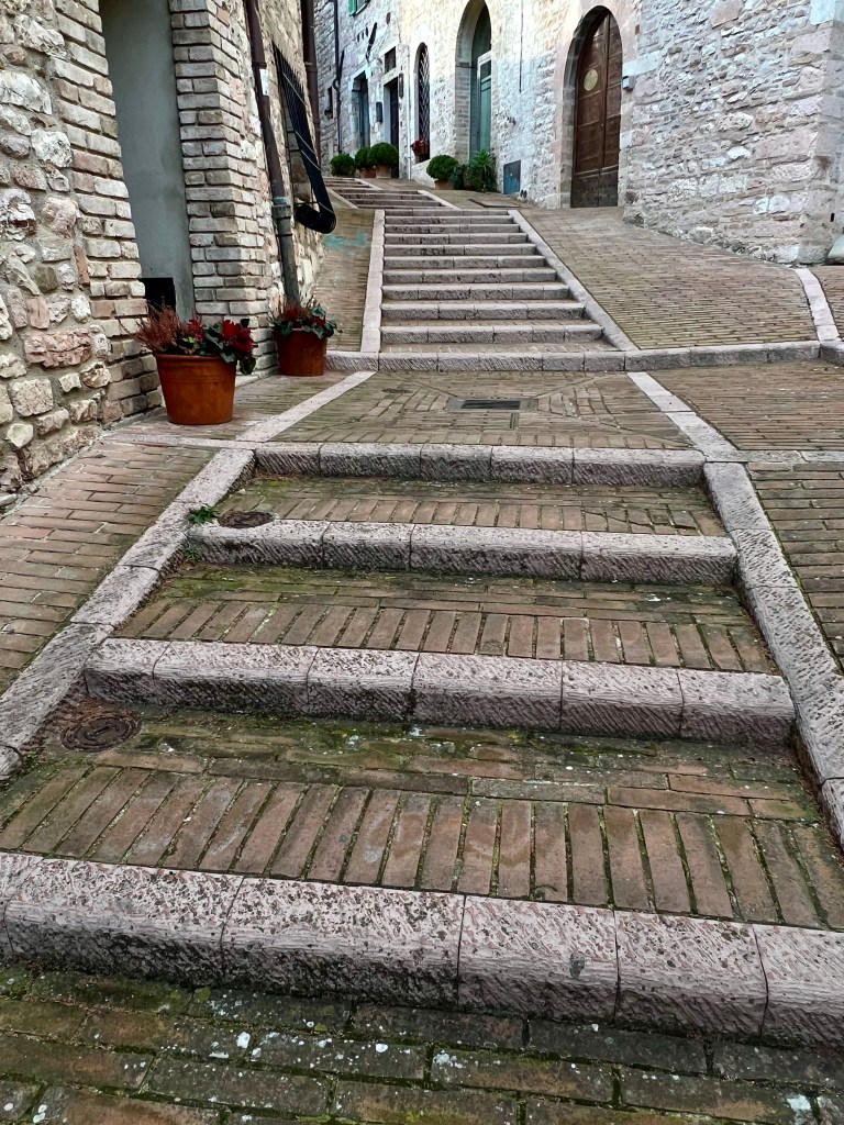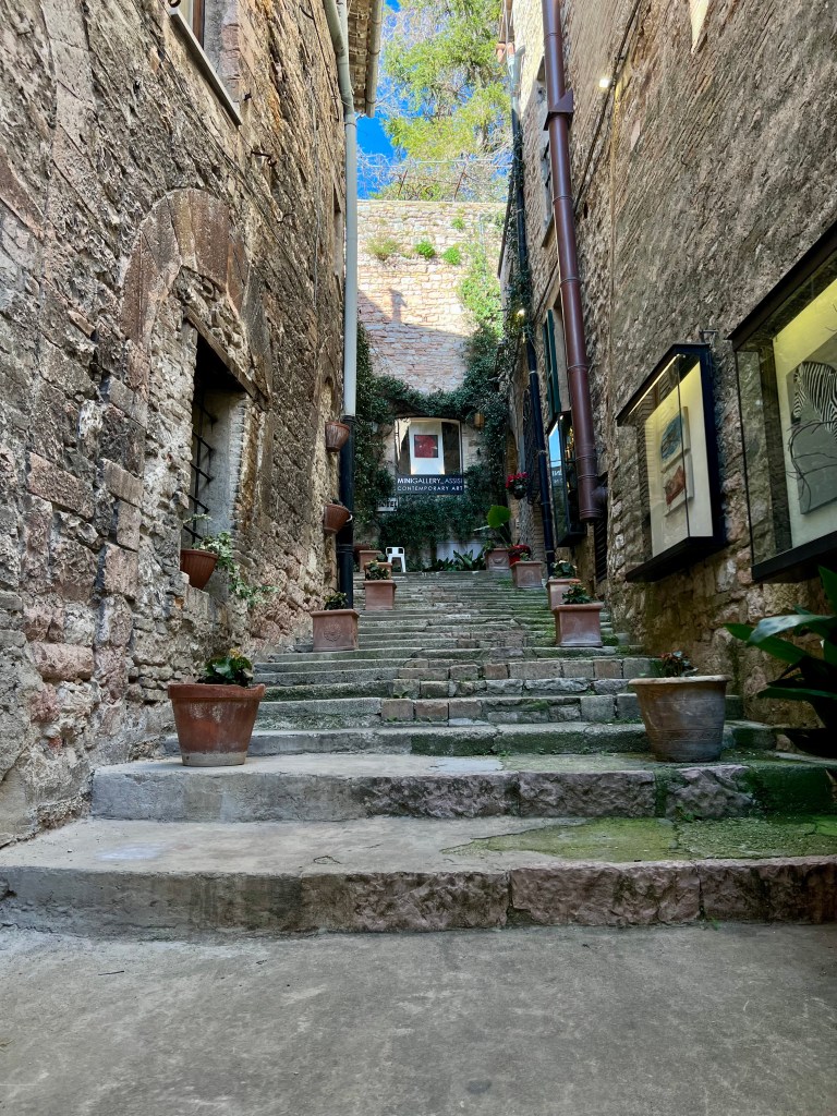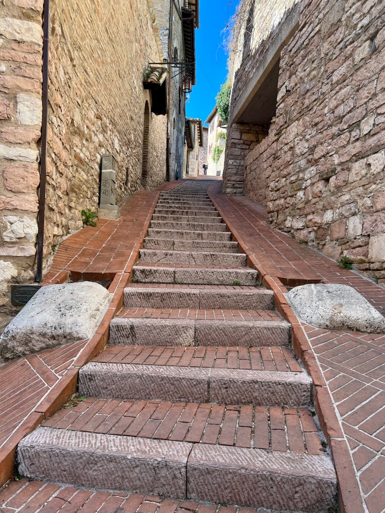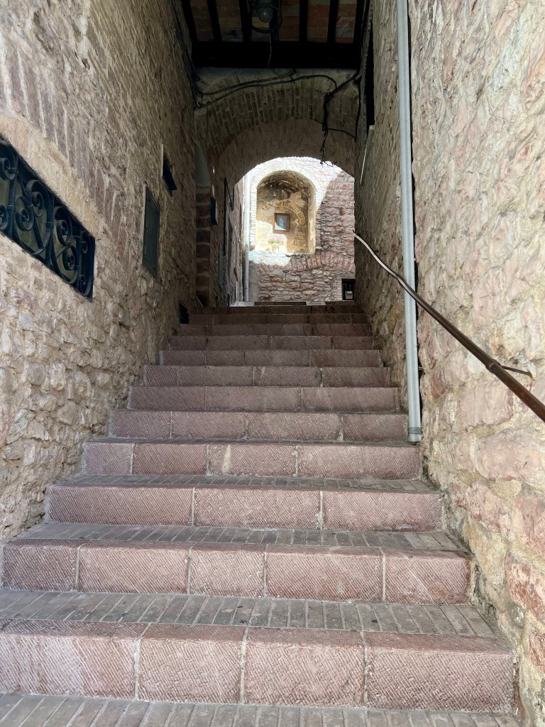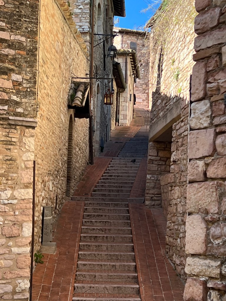 The cathedral, sitting high up on a hill commands a picturesque view of the surrounding area, opening wide to the countryside, fields and homes below. Assisi with its steep steps and hilly streets were a bit challenging but so very pretty.