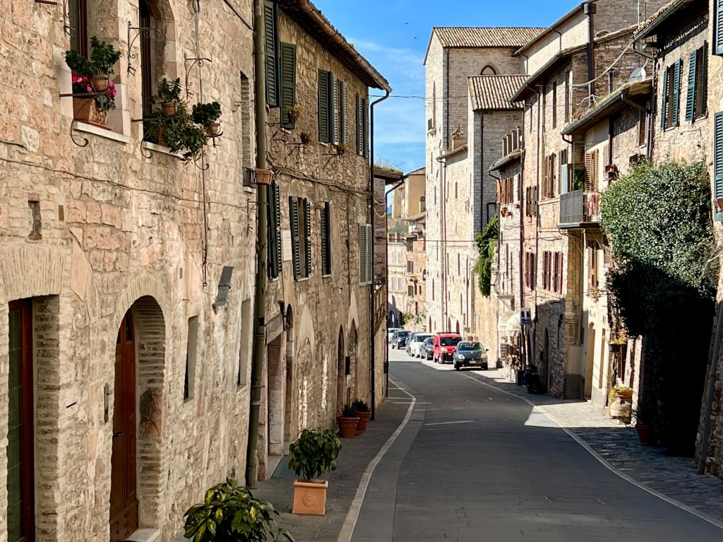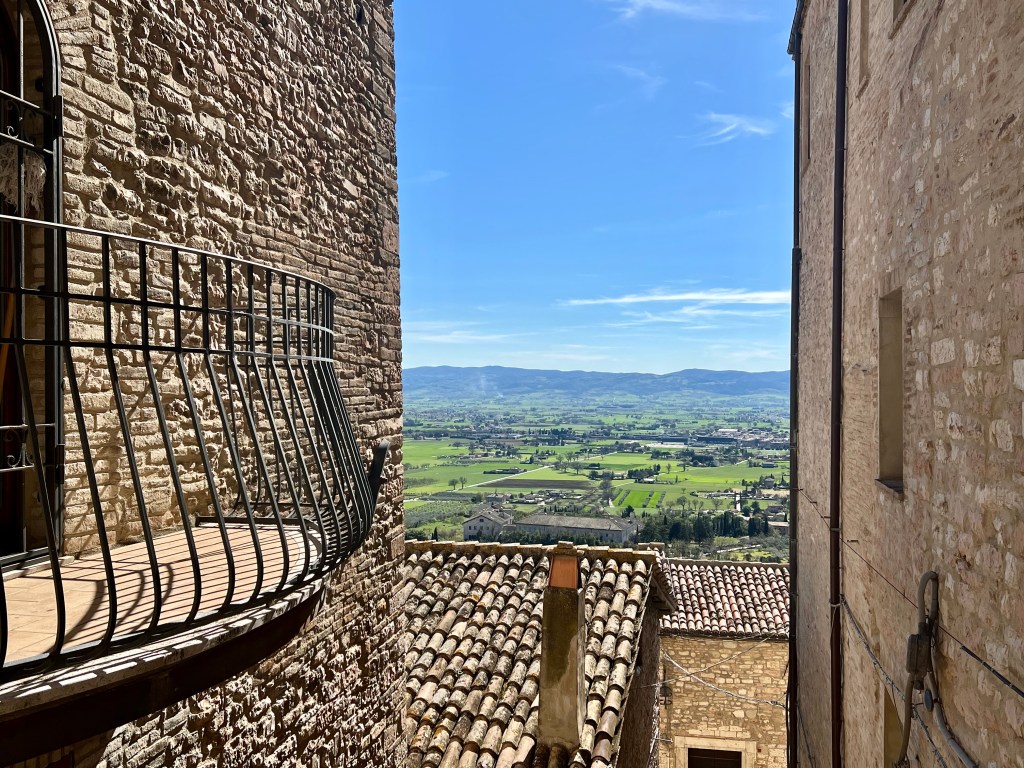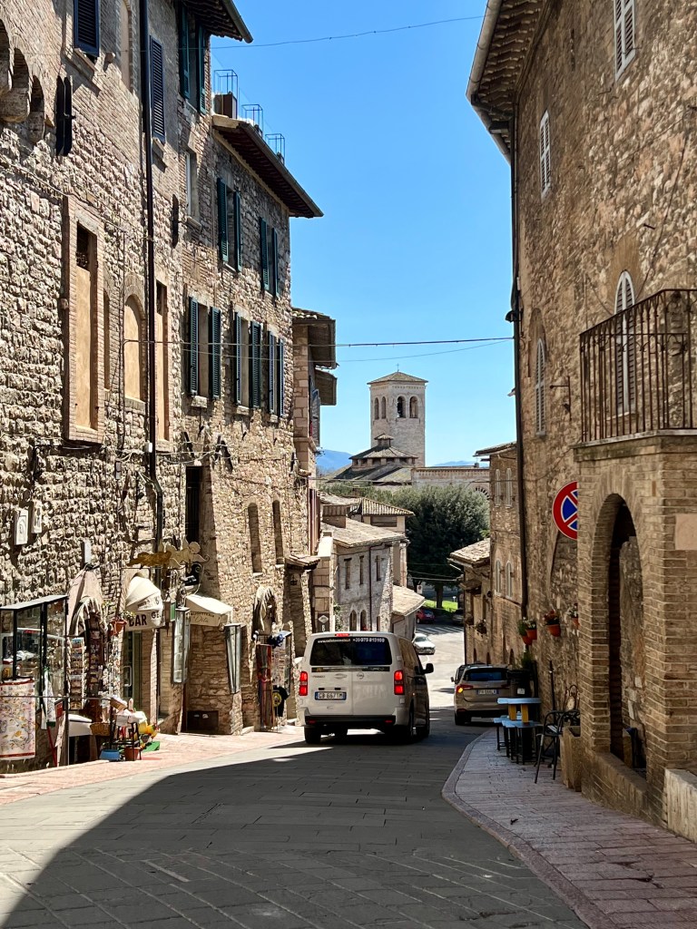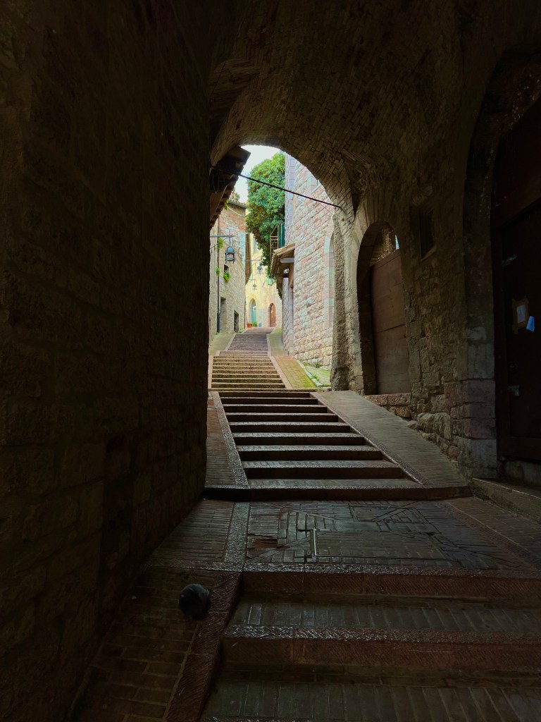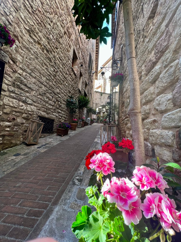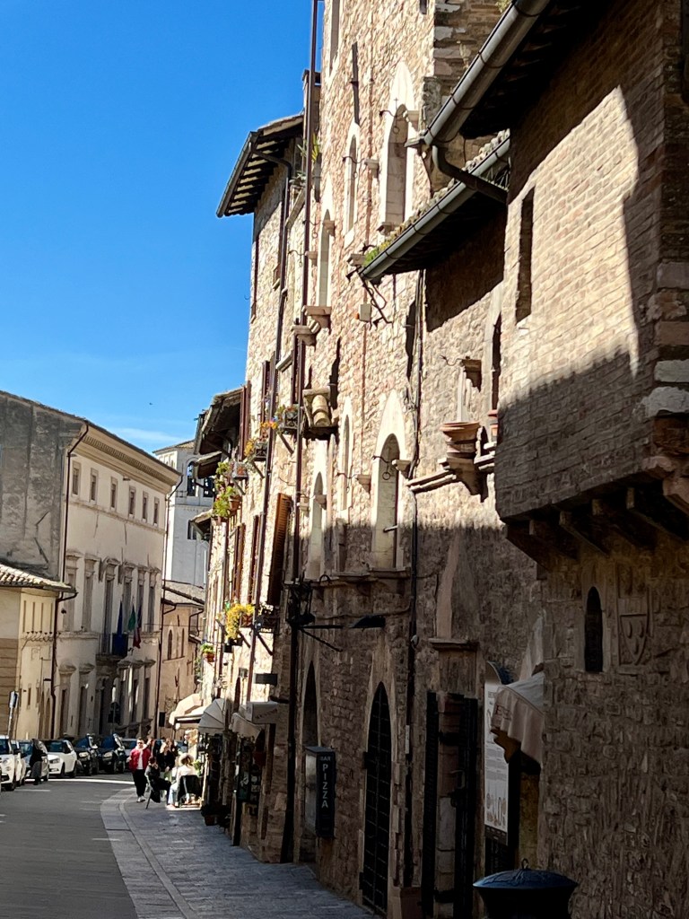 The cathedral, sitting high up on a hill commands a picturesque view of the surrounding area, opening wide to the countryside, fields and homes below. Assisi with its steep steps and hilly streets were a bit challenging but so very pretty.