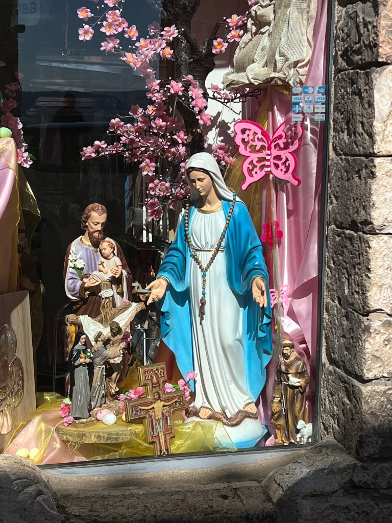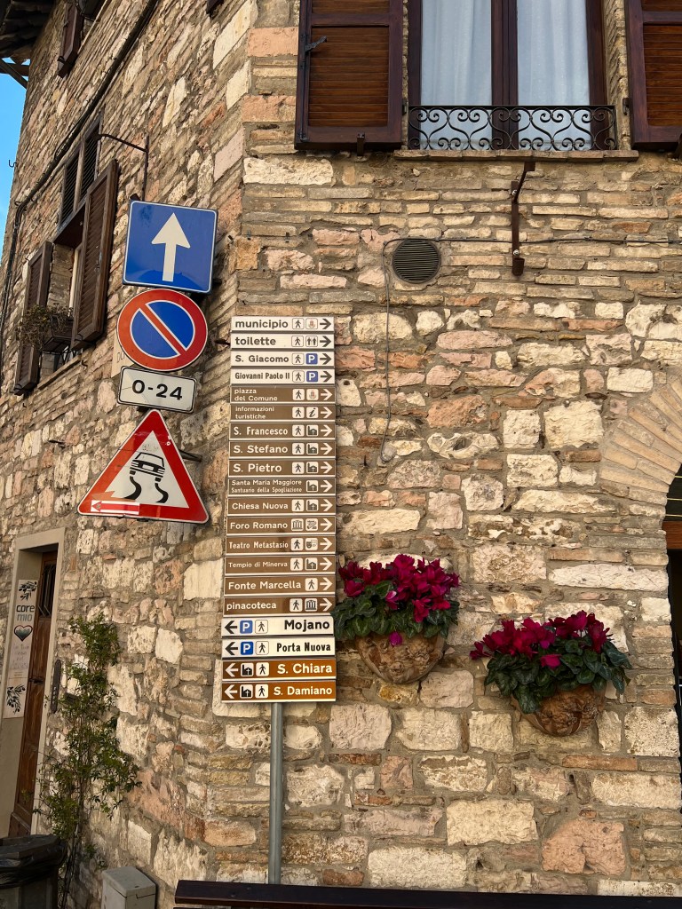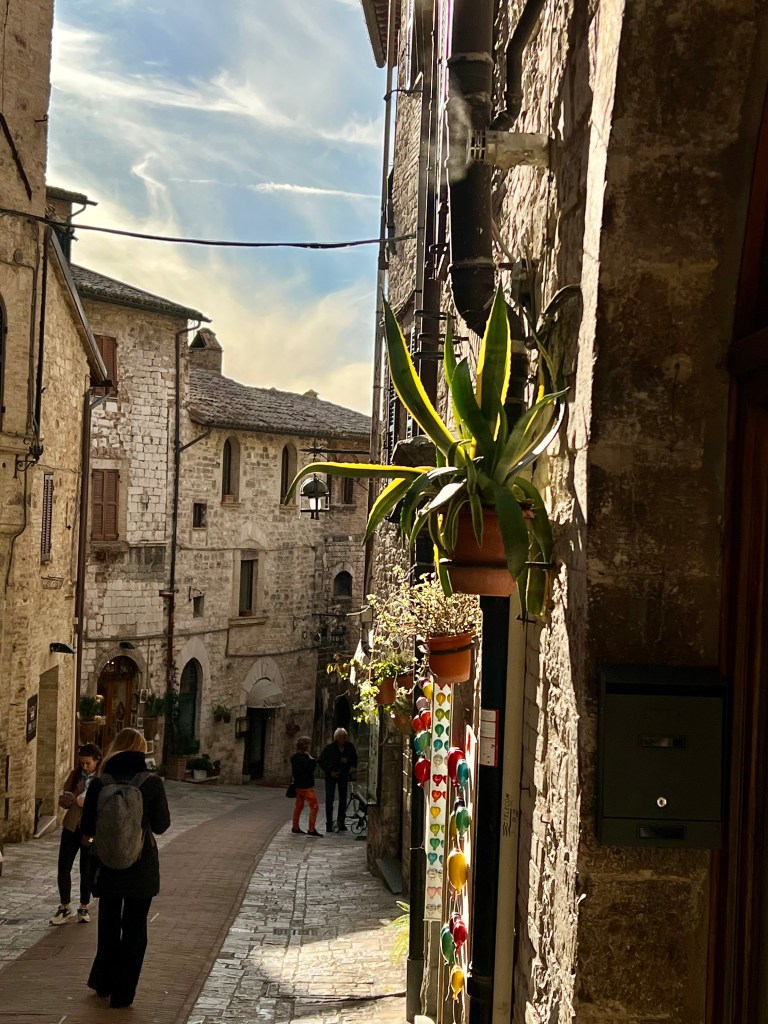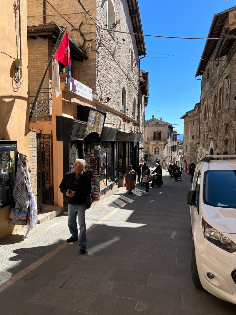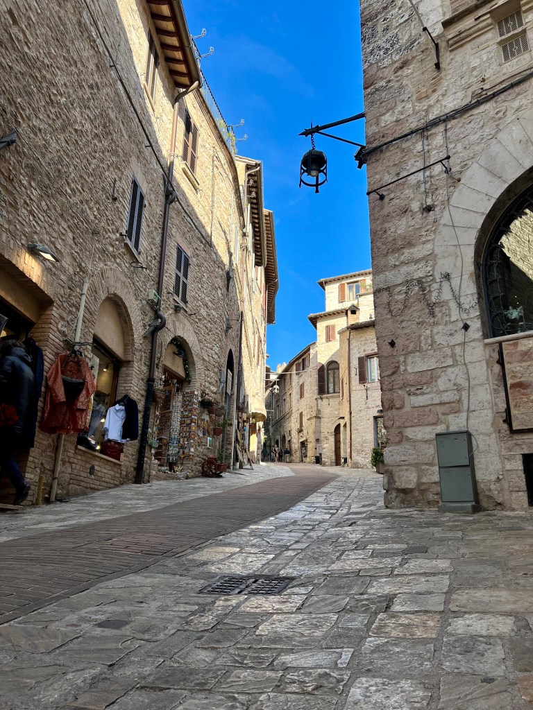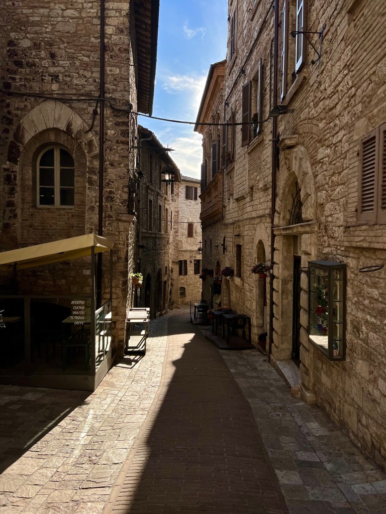 The cathedral, sitting high up on a hill commands a picturesque view of the surrounding area, opening wide to the countryside, fields and homes below. Assisi with its steep steps and hilly streets were a bit challenging but so very pretty.