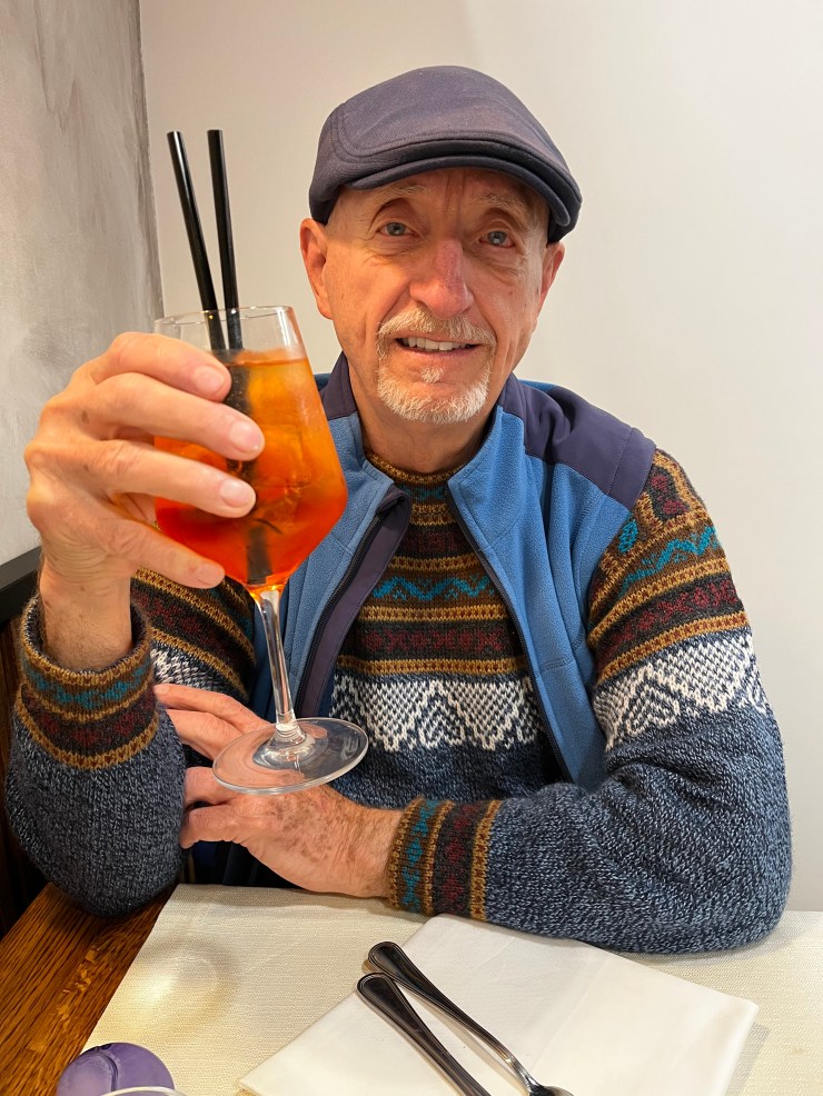 A little more shopping, finding the exact tablecloth John had seen before and getting to the shop just as he was closing. We wandered more into the Greek area and stopped for a late afternoon cocktail, this time I tried a Hugo Spritz. It was refreshing.