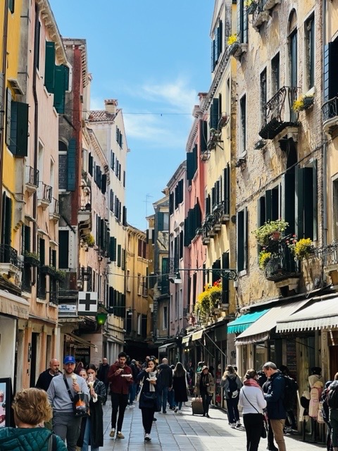 Remembering Venice with great admiration, I’ll always be grateful that I was able to travel there with friends and to share our time together. The history, culture and architecture came alive for me. The canals, gondolas, gondoliers, vaporettos, cafes, narrow alleyways, the bridges, ancient buildings, shutters on windows, flower boxes on windows, churches and church bells ringing out throughout the day, the opulence of palaces and churches, food, ambience and the slower pace without vehicles on the streets contributed to it being a calming and very charming city. And the outer islands of Murano and Burano both having their distinct qualities were pleasant surprises. Venice has left a special place in my heart.