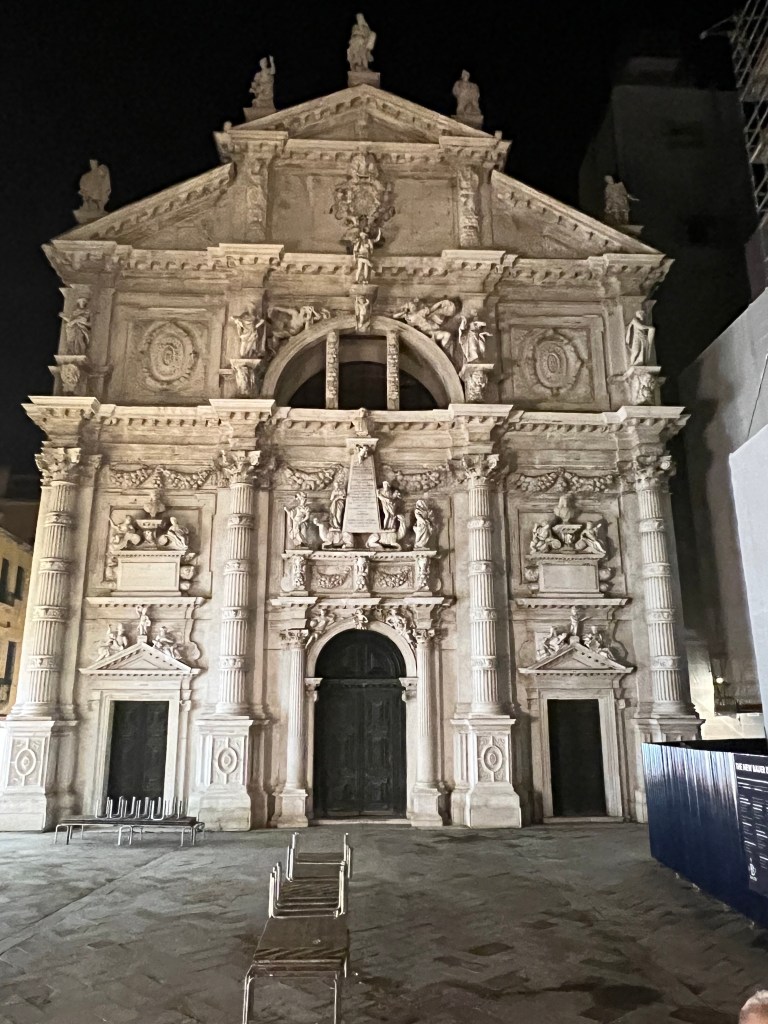 After dinner that evening, it was raining and we walked through St. Mark’s Square for one last time where the brightly lit St. Mark’s Basilica cast its reflected image upon the rain slick pavement.