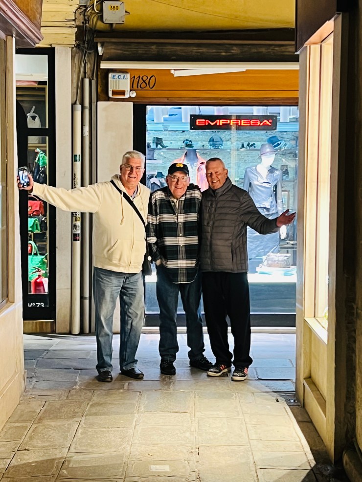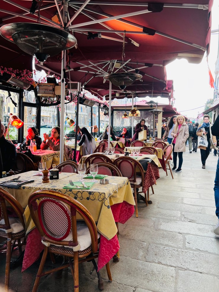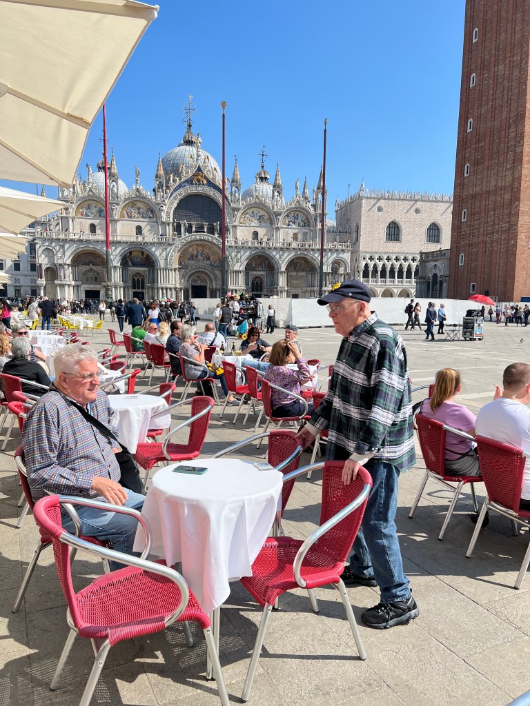 Taking the vaporetto back we met John near our hotel for drinks, we then heard helicopters hovering nearby but not in sight. Again, what was going on in Venice? Later in our hotel a notice was posted about a civil disturbance and that everyone was encouraged to avoid the area as a curfew was also in place in the area affected. It must have been something  significant, but we wouldn’t know what.