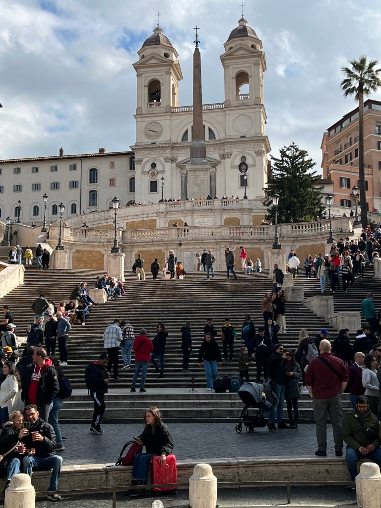 The following day before our tour of the Vatican, St. Peter’s Basilica and Papal museum, we walked to another monument site, The Spanish Steps. As with nearly everywhere, the crowds were swarming, many upon the steep slope of steps. From the piazza and water fountain at the base, the steps lead up to Trinità dei Monti church, at the top. We chose to forego further exploring there, deciding to walk to the Vatican.