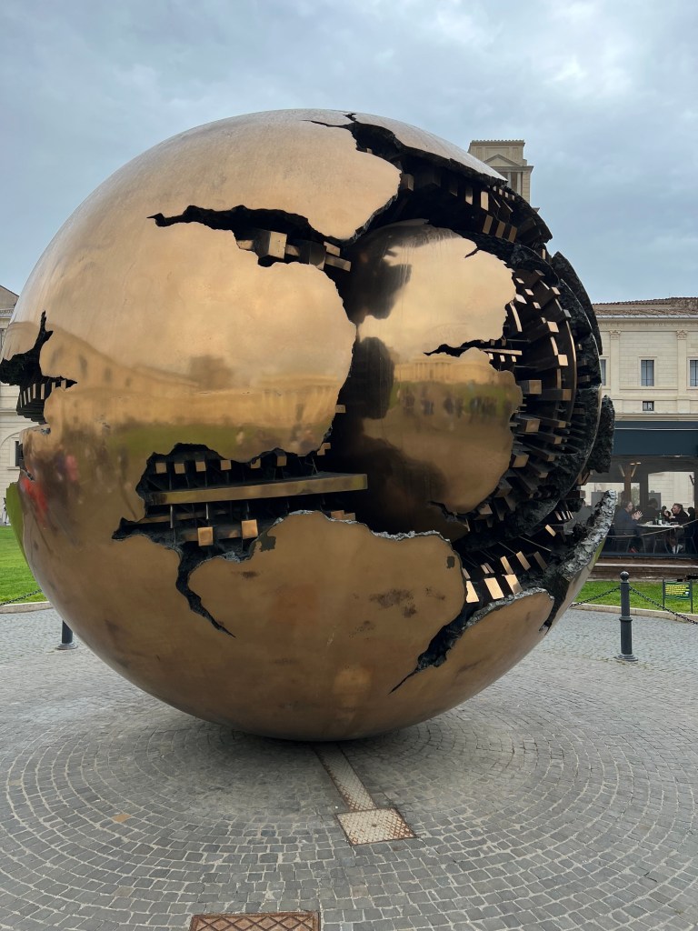 The Vatican Museums were first on the tour. Outdoors in a courtyard was the “Sphere within a Sphere” a modern addition to the collections within.