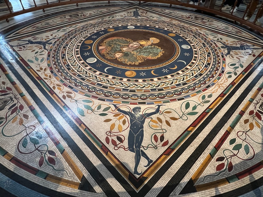 Most notable to me were the very long hallways lined with innumerable collections of statues and busts of significant people of the past or of mythological characters. Ceilings were works of art also with paintings and frescos complimented by mosaic tile floors. Another long hallway was lined with enormous maps of the world as known centuries ago.