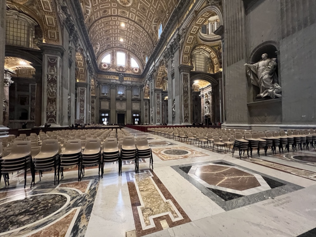 Seating inside the basilica was set up in preparation for Easter Sunday. We heard more about the popes who are interred there also.
