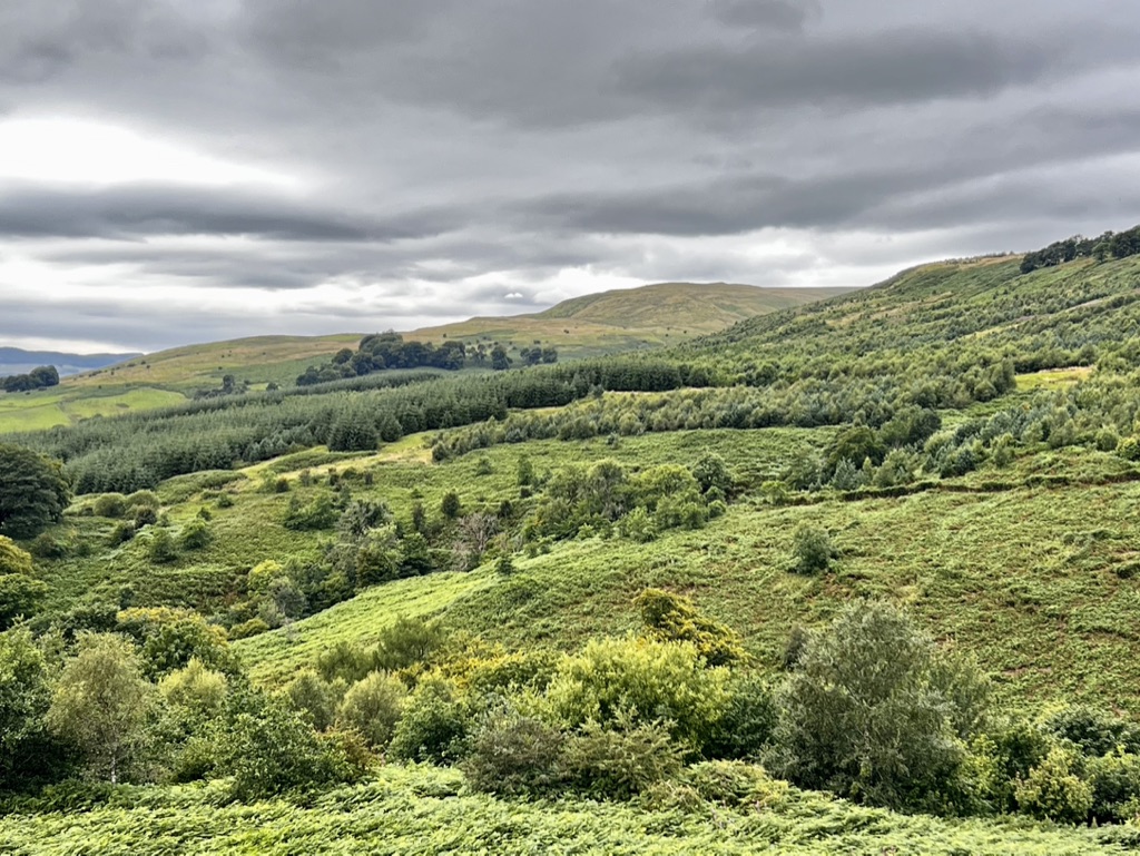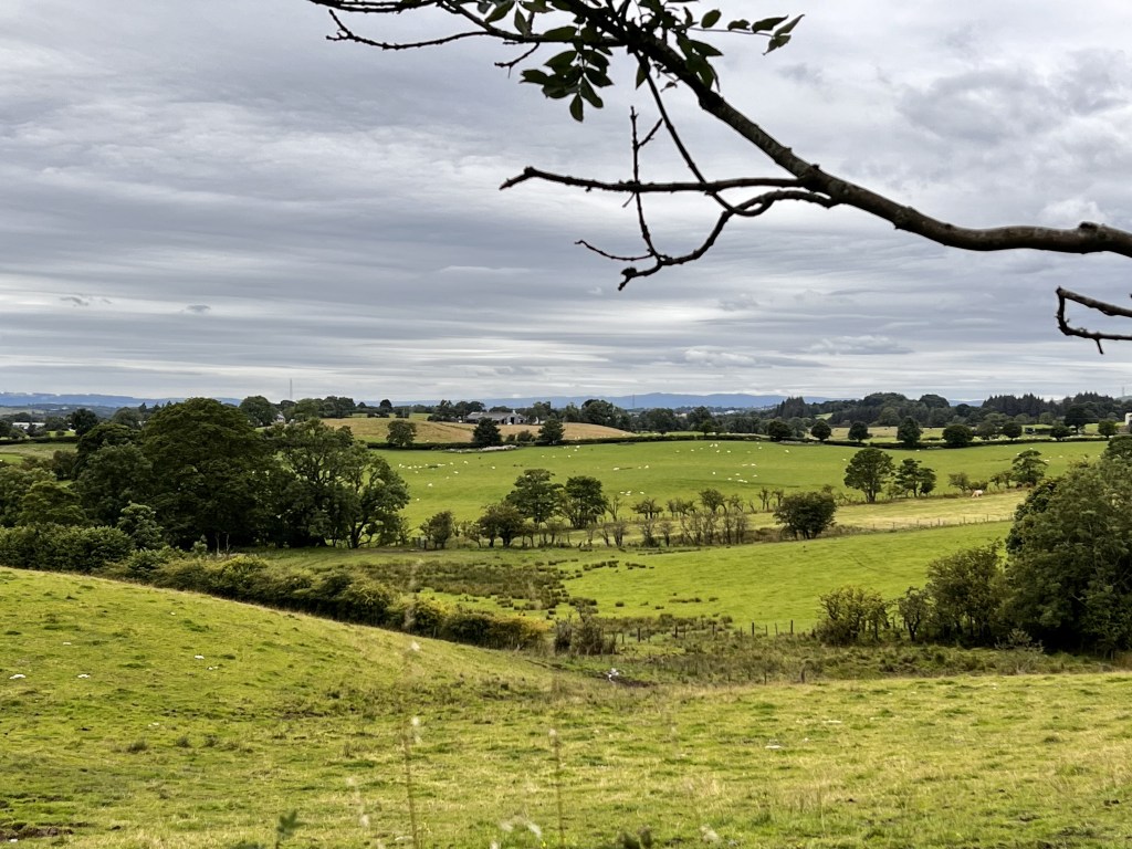 Arriving at their home in Torrance, a bit north of Glasgow, they helped me get settled in. I was to have my own bedroom on the first floor. Still quite awake they took me out for a hike nearby into the surrounding countryside, up hills for wonderful views, through wooded areas and down one lane country roads, circling back to their home.