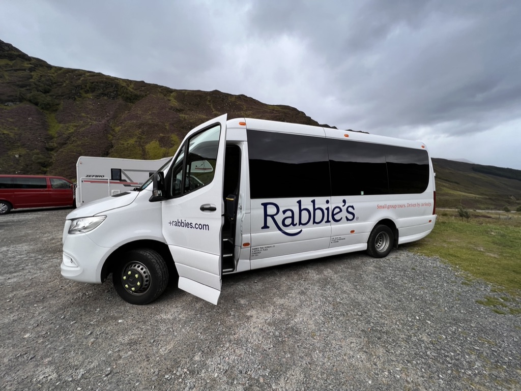This day I would be joining a 5-day group tour of the Scottish Highlands via Rabbie’s Tours. I’m sure most readers will pronounce Rabbie’s as RAY bees, when, however, in Scotland it is pronounce RA bees (or ROB ees). This company offers many tours around the UK and Europe, not just Scotland. I choose the 5-day tour of the Highlands to get the best possible experience at a reasonable cost, seeing the most territory in this time frame, in a comfortable and safe manner.